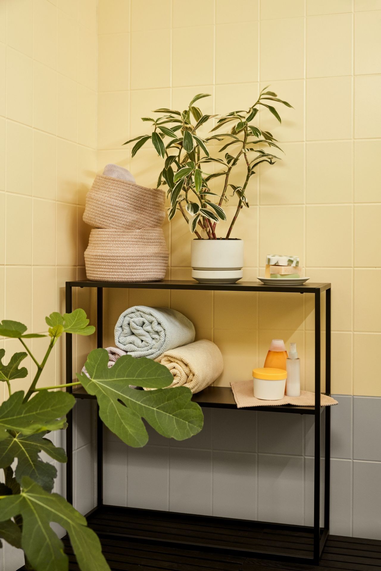 Once you’ve styled your bathroom with paint, the next step is to tie everything together with accessories. Small details, such as towels, bathmats and houseplants will work wonders. Choose colours and textures that suit your bathroom.