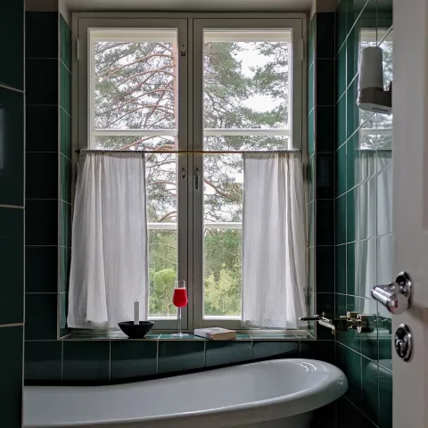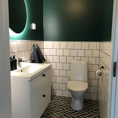 Bathrooms are typically small spaces, which makes painting a wall one of the simplest and most effective ways to change the room's mood. Darker and richer colours such as M442 Fjord can give your bathroom a more intimate and intriguing feel. If you want to balance a deep, powerful colour, combine it with white or another light shade.