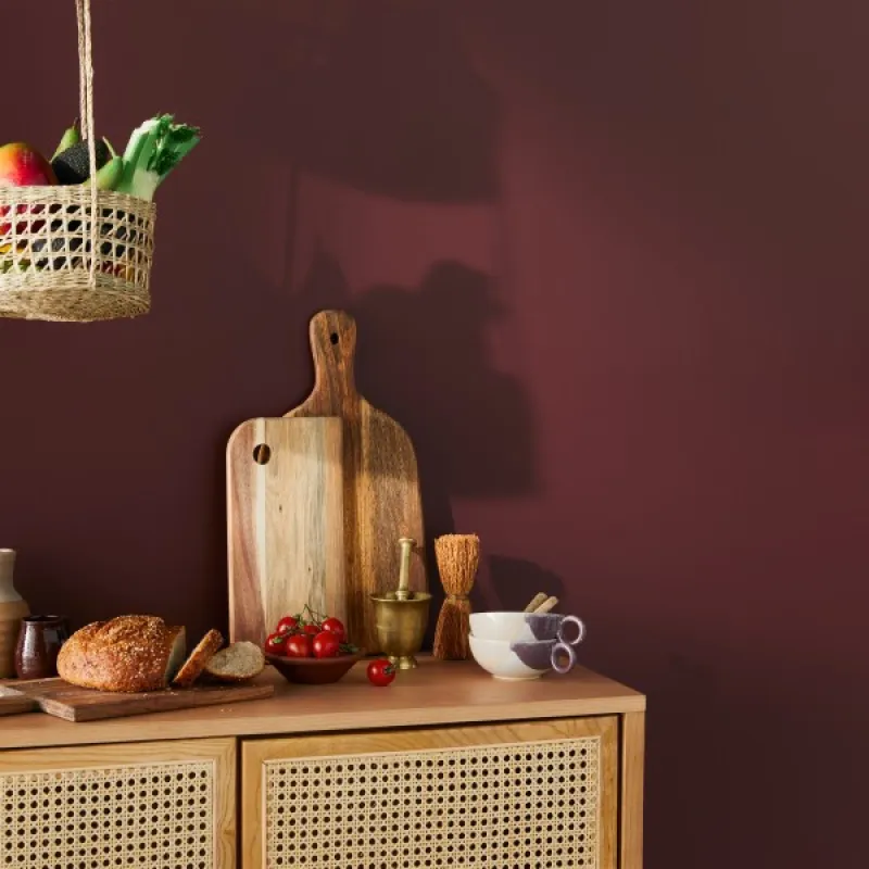 Ripe sour cherries look juicy and plump as you pick them from a tree. The deep crimson colour with a brown undertone is a strong and bold colour that gives depth to your interior.
