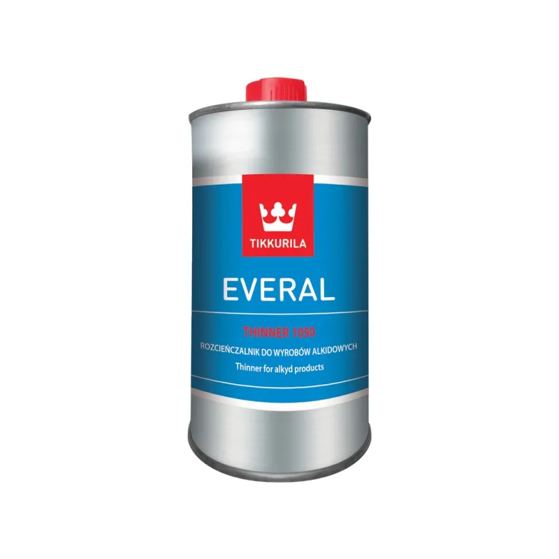 Tikkurila Everal Thinner 1050 is design to thin paints and varnishes based on alkyd resin. The product is good also for cleaning the painting tools and for cleaning the grease from the surface before painting it with alkyd products.