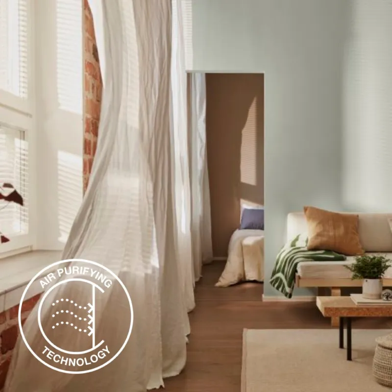Full-matt interior paint with innovative air purifying technology* that reduces the level of harmful formaldehyde from indoor air. The functionality is proved by accredited independent laboratory by test methods ISO 16000:23. Excellent hiding power allows you to get beautiful, easy to wash surface. * the effectiveness of the Air Purifying Technology paint products may change over time depending on a variety of factors such as the size of painted surfaces, the number of layers applied, the use of the in-door space and the concentration of formaldehyde.