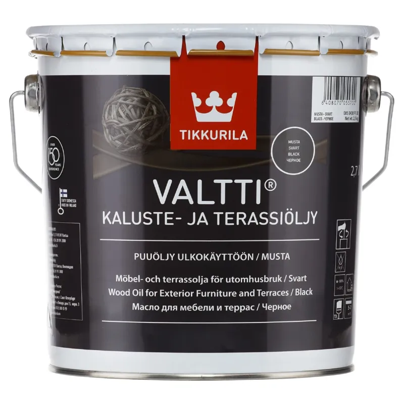 Solvent-borne, ready-made tinted wood oil for outdoor use. Contains wax. Protects wood against moisture and dirt and decreases cracking of wood surfaces.