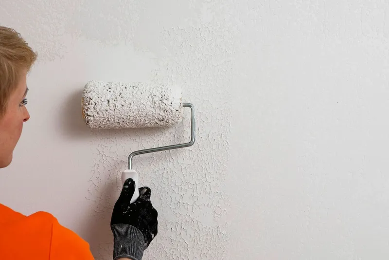 2. Apply Tunto Hieno J459 with a long nap paint roller using vertical strokes. Use Tunto Hieno so lightly that some primer remains visible.