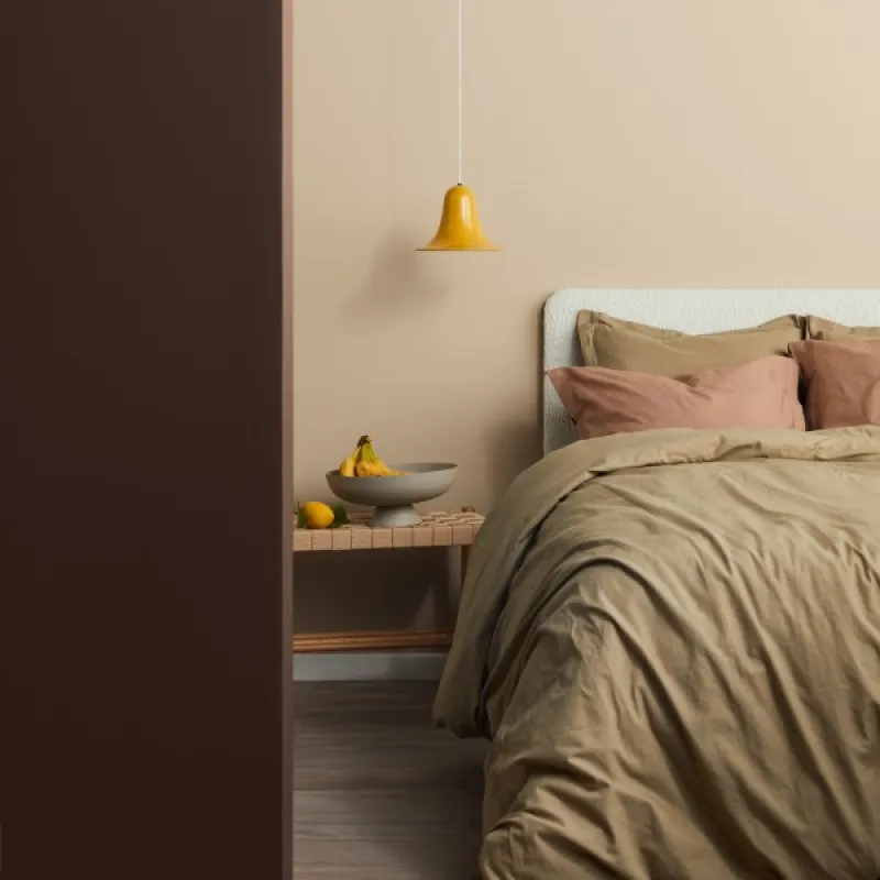 A rock with golden dots like freckles. Gold Ore is a warm beige with a yellow hue. Try it on your bedroom walls to create a warm, nest-like feeling.