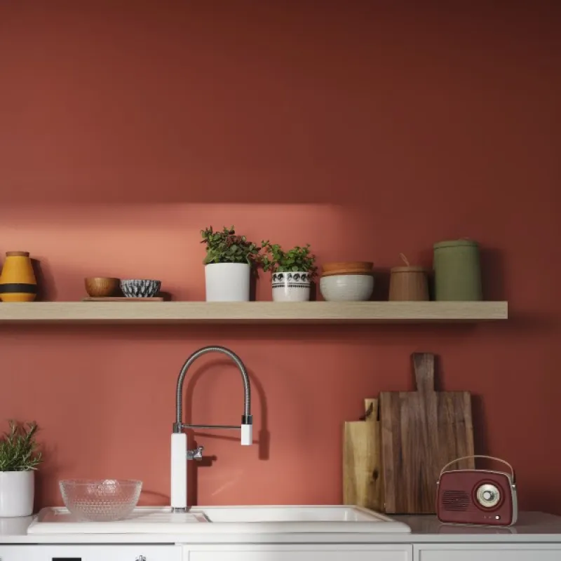 Light hits the plastered red walls and makes them glow. The intense colour of red soil, burnt clay and warm spices.