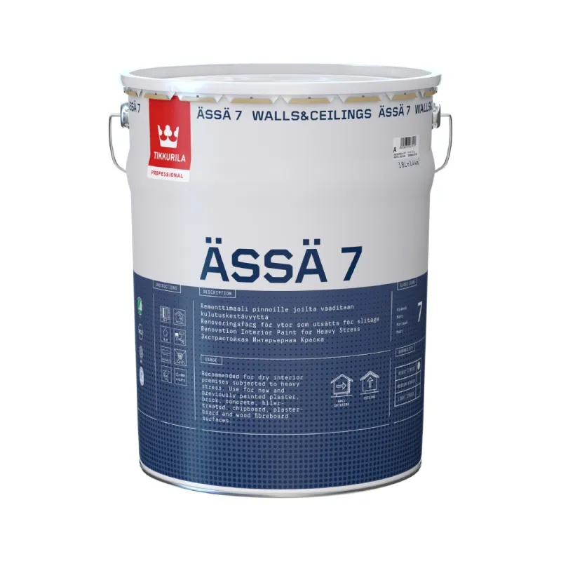 Ässä 7 has received an M1 category for its low emissions as well as Nordic Swan ecolabel. Product is developed in cooperation with Finnish Allergy, Skin and Asthma Association. It can be used in LEED and BREEAM constructions (see Product Data Sheet for details). It also has MED (Marine Equipment Directive) certificate.