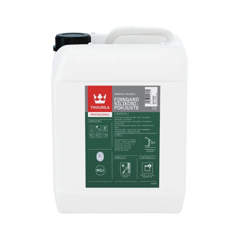 The primer for mineral exterior surfaces enables improved coverage of the topcoat. In order to improve the adhesion of the paint to the surface, use Finngard Silikonipohjuste as a bonding layer for priming porous, water-absorbing masonry surfaces before painting.