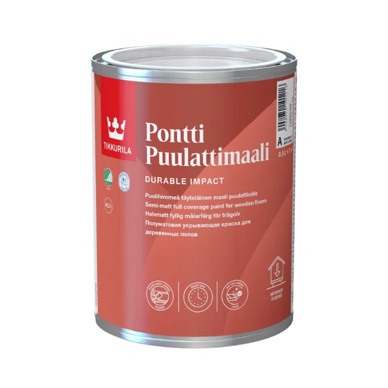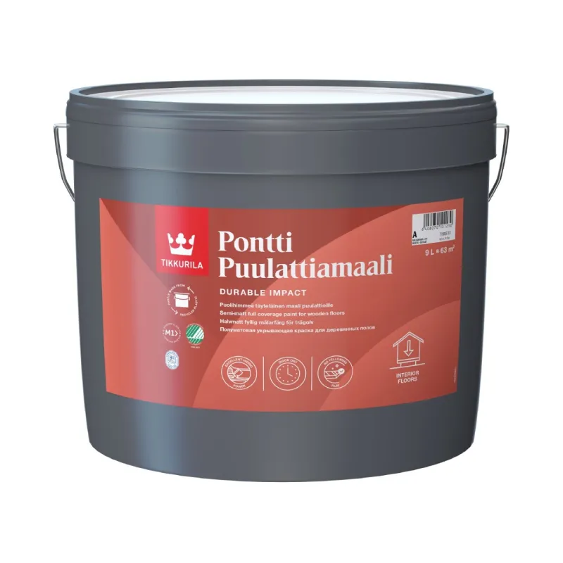 The floor stays beautiful for a long time, as Pontti Puulattiamaali's colours do not turn yellow over time. Can be tinted to any colour of your choice from a wide range of Tikkurila's interior colours.
