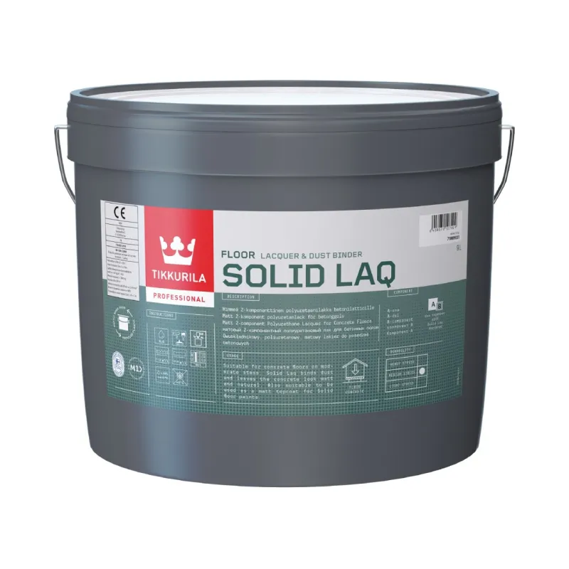 Suitable for concrete floors on moderate stess. Solid Laq binds dust and leaves the concrete look matt and natural.