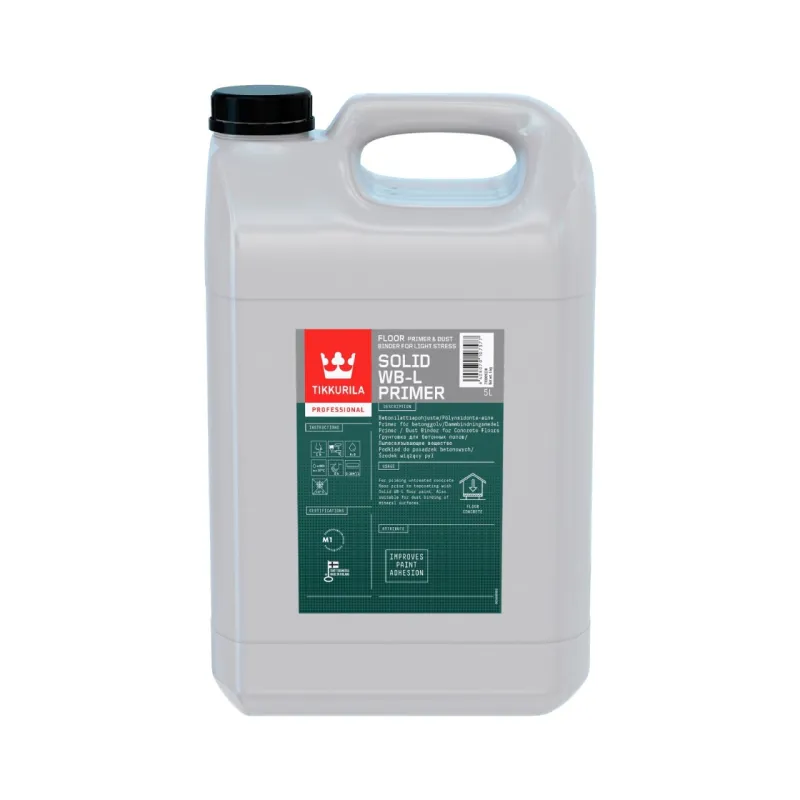 Suitable for priming new untreated concrete floors before painting with Solid WB-L Floor Paint. Suitable for dry floors exposed to light mechanical and chemical stress. Can also be used for dust-binding on indoor mineral surfaces. Improves the adherence of paint and makes the substrate stronger.
