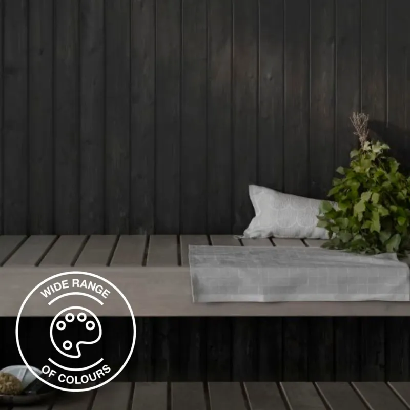 Supi Saunavaha (Sauna Wax) is a waterborne protective finish containing natural wax. Like a thin stain, it permeates the wood and gives it a naturally beautiful, silky matt protection. The ready-mixed colors are black, white, and gray. The product can be tinted to other colors.